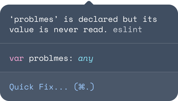 O ESLint analisa estaticamente seu código para encontrar problemas rapidamente. É implementado na maioria dos editores de texto e você pode usá-lo como parte de seu processo de integração contínua.